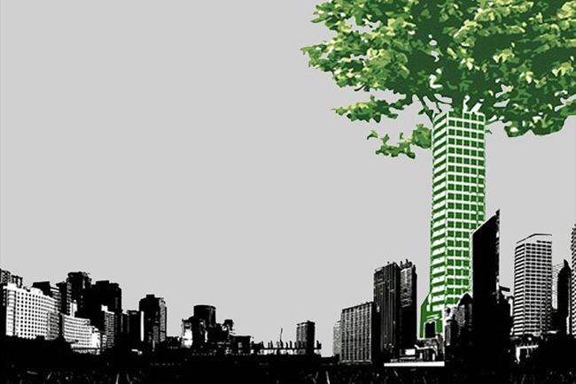 目前, 生态建筑在各地方发展都处于起步阶段。总的来说,各国建筑师都在潜心研究生态建筑的技术和设计方法,从建筑设计上看,主要有两种倾向。一种是将建筑融入自然。就是把建筑纳入与环境相通的循环体系,从而更经济有效地使用资源,使建筑成为生态系统的一部分,尽量减少对自然景观、山石水体的破坏,使自然成为建筑的一部分。如日本的“Acros 福冈”,该建筑向公园层层退台,在退出的平台上做屋顶绿化,这样建筑与公园绿化融入一体,通过高技术实现能量循环利用。第二种是将自然引入建筑,运用高科技知识,促进生态建筑化,人工环境自然化。如马来西亚杨经文设计的绿色摩天大楼。它在现代都市中引入自然,再现自然,运用生态技术,将植物、水体等自然景观引入建筑内部。