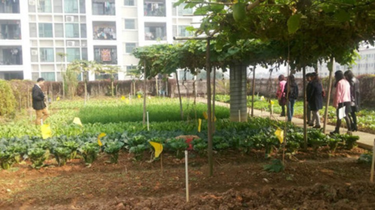 据介绍,该园在建筑设计上很有特色,夏季利用水循环系统再利用的方式,为整栋幼儿园建筑降温。笔者在现场体验时发现,整栋建筑物周边的浅水池则种植了瓜果和向日葵等绿色植物,二道三层则栽种了爬山虎。三楼和四楼则种植了大量的西红柿、空心菜、青瓜、生菜等多种日常食用蔬菜。“孩子们将会逐渐观察并体验到一粒种子如何长成蔬菜。等这些瓜果长大后,幼儿园将摘取这些果实,端上孩子们的饭桌。”园长张秀文告诉笔者,为达到自然生态效果,整栋建筑没有安装一台空调。时间再久一些,外围的爬山虎等植物逐渐长大后,将会包围整栋建筑,届时可以达到保温隔热的效果。