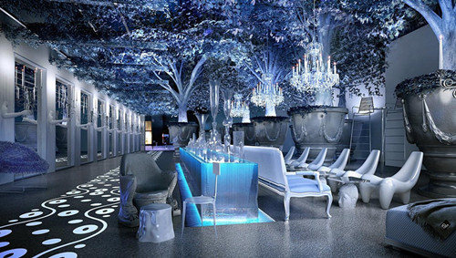 进入酒店,先要经过标志性的30英尺长红木门,之后是充满阳光、布满金盏花调色的走廊。走过走廊,好似太阳慢慢落下;白天瞬间变成夜晚,现实霎那变成梦幻,Noriega-Ortiz展开了想象让你掉入《爱丽斯漫游仙境》中的兔子洞店(Mondrian, Los Angeles)则与1996年正式开业。