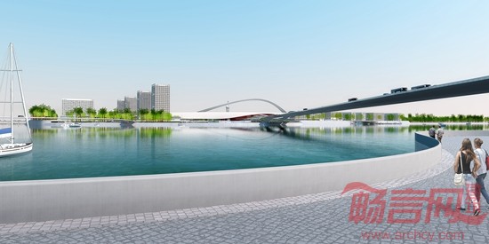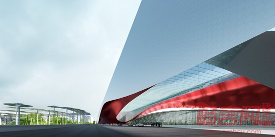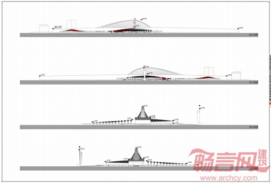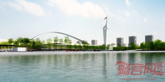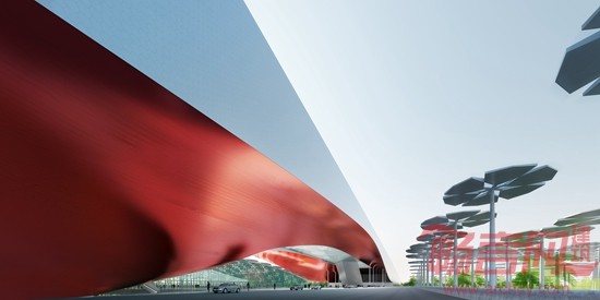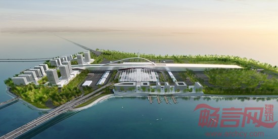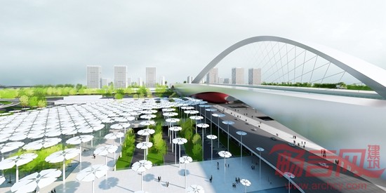 口岸建筑之于城市除了功能之外,有一个重要的作用就是它的标志性。本方案结合在口岸主入口营造一个无柱大型公共空间的需求,设计了一个顶高100米的拱形悬索桥结构,这个结合了力度和轻盈的“拱桥”将成为珠??诎兜谋曛?,也将成为珠海城市的新名片。
