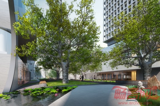 由于贯穿项目用地的老塘路作为钱江文化的载体被保留下来,为地块内留下了历史的印记。因此藉由对文化遗产的保留,在本案的巧妙设计下,诞生了萧山区市民服务中心的三个院子--庆典广场、荷花园和风竹院,与城市开放相连。作为市政府向市民提供的办事和会展空间,三个院子贡献的慢行环境优雅,恬静,可以舒缓都市人群快节奏的生活压力,提供交流与沟通的休闲环境,使区域人性化并充满活力。