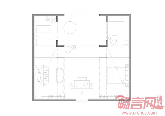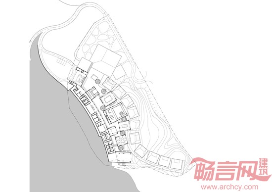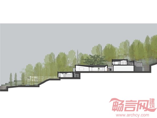 由于用地较为狭小,同时主体空间采用了院落空间,因此各院落空间之间的关系顺其自然组织为山区村落的模式,在院落间的村落中行走增加了自然野趣和惊喜。