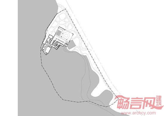 如将建筑集中布置在任何一个地貌上,建筑将比较集中而显得体量较大