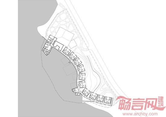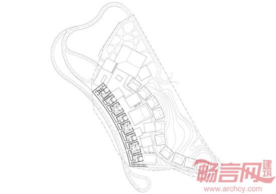因此将建筑布置为平行等高线的上中下三条线布局