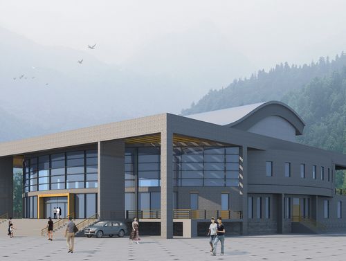 此项目为西安金丝峡剧院,方圆结合,体现了中国传统文化理念----天圆地方,天人合一。