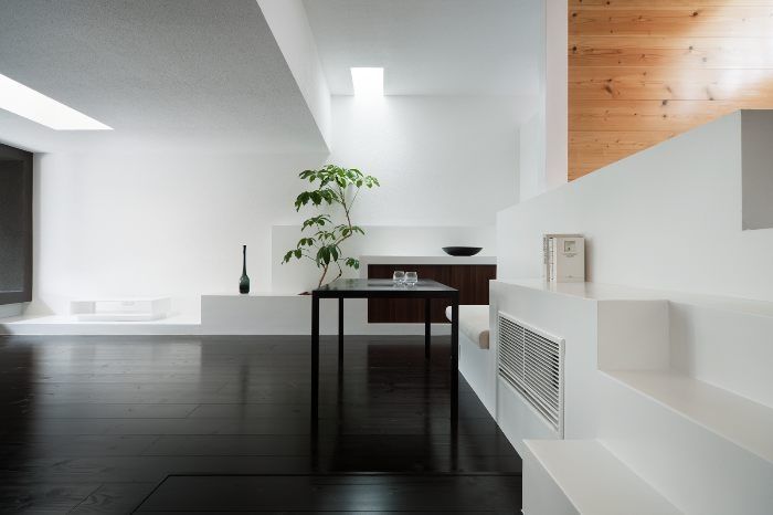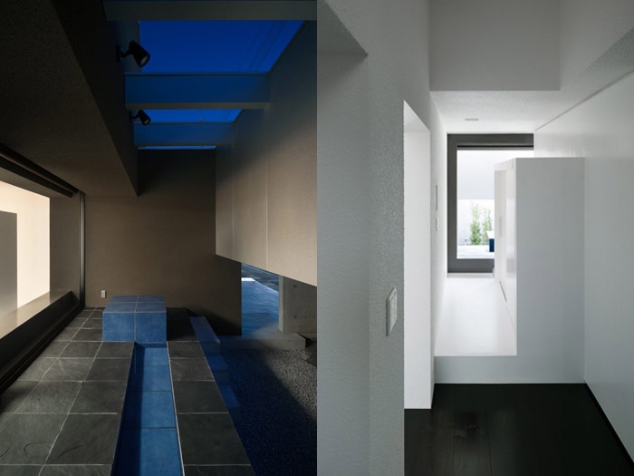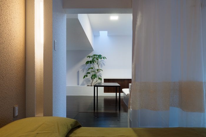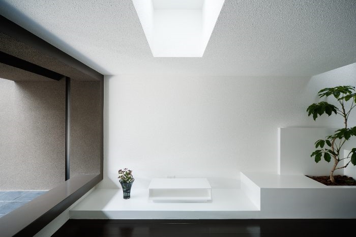 建筑像一个与柴米油盐无关的存在。极简的外表让人扑捉不到一丝生活气息,与内部的丰富形成对比,建筑师在各处布置了天井,将光线从不同的顶端引入室内。像许多日本住宅,光来自顶部天花的面,局部光线间接来自墙壁的面。四周的“禁闭”,顶端的“开放”。展现出日本高密度住区中自建住宅的一种独有精神内核。