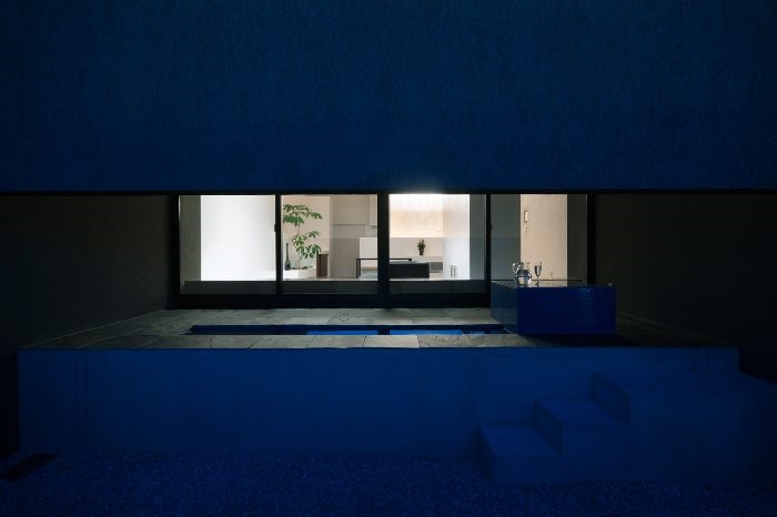 房子设计非常精心,内外混凝土墙联系整体,避开噪音和不雅景观。顶端和底部打开缺口,让光线渗透进来。顶端的开口让柔和光线在房间中散开,底端的缺口让人们的视线到达院子。交错的两道墙使视线扩张同时保证隐私。搞出地板的台面可以让人们停靠和做下,也能当成桌子用。客厅顶上下来明亮的光,周边墙壁则是柔和的光,实现了开放和宁静的居住环境。