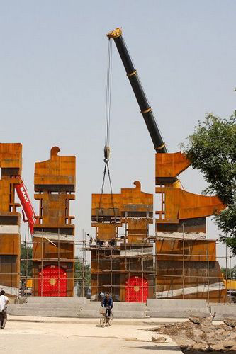 大明宫遗址公园于2010年5月正式开始建设,预计10月1日开园,因而各项工程正在紧锣密鼓进行??墒橇钊瞬唤獾氖?,公园中已建成的部分建筑正在被拆除。含元殿后,位于中轴线上的一座原已建成的宫殿的钢架也被切割拆毁,横七竖八扔在一边,所种的树木也被拔出躺在基座下边。在含元殿东侧已建成的一座城门雕塑也被拆除,外面的一层钢板已被切割开几道,漏出内部的混凝土主体。在起重机的帮助下,工人们正用凿岩机将其凿断。这种建了又拆的做法,让周围的市民和网友们疑惑不解。