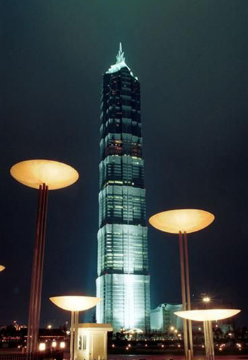 金茂大厦[1](JinMaoTower),又称金茂大楼,位于上海浦东新区黄浦江畔的陆家嘴金融贸易区,楼高420.5米,目前是上海第3高的摩天大楼(截至2010)、中国大陆第3高楼、世界第8高楼。大厦于1994年开工,1998年建成,有地上88层,若再加上尖塔的楼层共有93层,地下3层,楼面面积27万8,707平方米,有多达130部电梯与555间客房,现已成为上海的一座地标,是集现代化办公楼、五星级酒店、会展中心、娱乐、商场等设施于一体,融汇中国塔型风格与西方建筑技术的多功能型摩天大楼,由著名的美国芝加哥SOM设计事务所的设计师Adrian Smith设计。