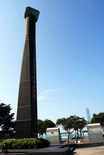 纪念碑柱头用紫铜锻制而成,表面经氧化处理,历久不变。寓意香港回归后,继续繁荣昌盛。