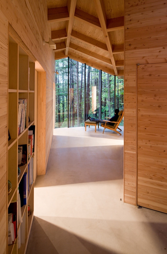 客户选择的场地在山地中的日本落叶松林里,从东京做高速列车过来只消一小时。客户将在这里享受与城市生活截然不同的环境。场地在30年前被人为的修整平,客户希望房子完全融入周围的环境,因此我们一次展开设计了这个小屋。