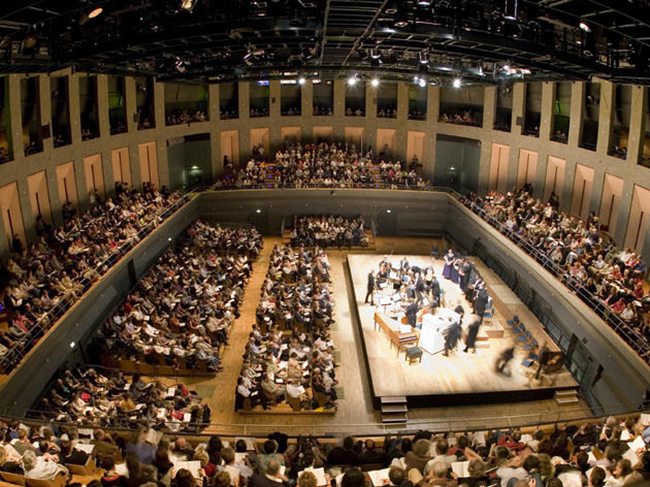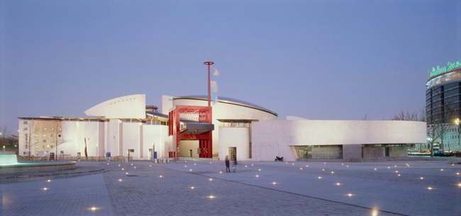 东部音乐城共5万平米,1995年建成,全部面向公众开放,包括一个800-1200人椭圆形音乐厅,乐器博物馆,排演厅,会议厅,学生宿舍等功能。每个不同的功能成为一个单独的特有的形体,组合成在一个三角形的“街区”,中间由一个围绕着音乐厅展开的螺旋形的展廊连接。