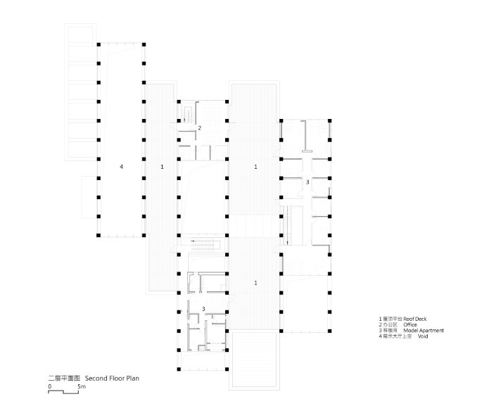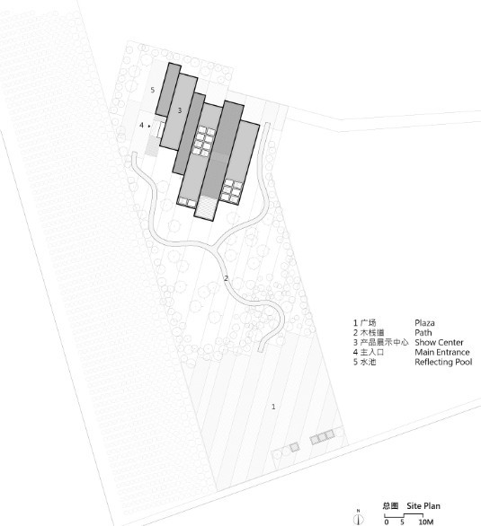 太原作为山西省会,是中国二线城市迅猛发展的典型代表。然而城市的发展中心在南侧,项目所在的地段还是一片空白,尚待发展。面对这种具有中国郊区化特色的城市环境,我们希望“千渡馆”能具有更为都市化的空间环境:它是能建立起更高效率的空间;也是能够鼓励更多联系与可能性的空间。在这样的空间中,你站在门厅,能越过观看演出的人群,看见一对情侣在院中闲逛;还能望见二层的职员离开办公桌,去屋顶平台参加晚宴。