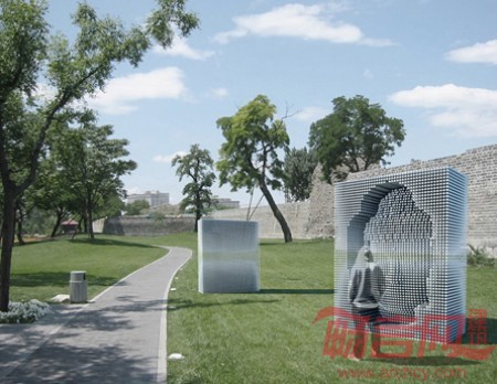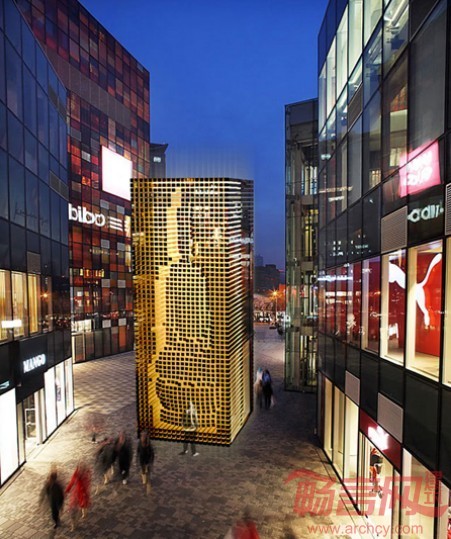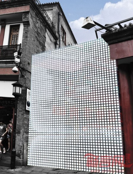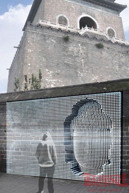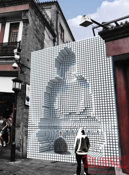 iBuddha代表了瞬间,交互与包容的新世代佛教空间。i可以是“instant,interactive,inclusive",也可以是指个人化的佛像。对路人而言,这只是个像素块一样的城市雕塑,只有当人停下来寻求宁静时,上方的摄像监控才会触发电源,显现出预设的佛像。