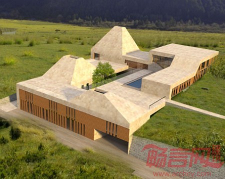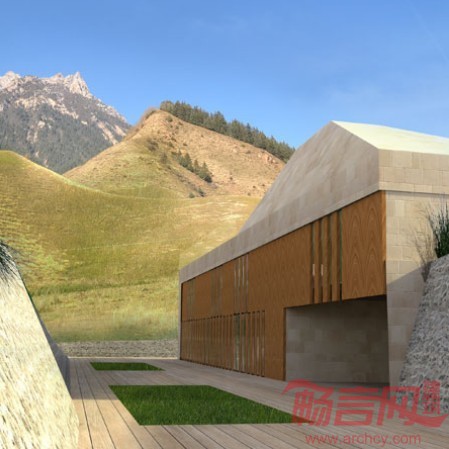 方案概念来自于当地游牧名族的毡房。牧民习惯于在抬头就能看见天空的毡房里围成一圈,大口喝酒吃肉。建筑师希望能够将围炉夜话的场景带入现代的毡房,给现代人一个温情的交流场所。