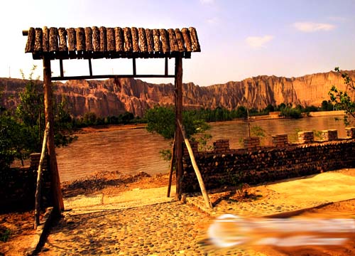 黄河与石林相佑自东向西流淌着而又在此地绝地180度大拐弯;悠长的戈壁与母亲河相拥养育着世代繁衍的两岸黄河儿女;浩渺的沙漠与戈壁绿洲相生相赖;这一切不相干的元素柔和而默契交织在一起,仿佛神话被龙湾村经年的阐释着;这一切地疑惑与不真实,你只有攀沿到饮马大峡谷尽头最西侧的山峦顶峰后,借着晨曦中眼前的那一抹金光,俯瞰着炊烟袅袅的龙湾村,方能够明白,明白这一切的真实所在。