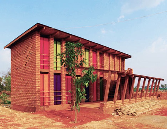 学校是使用当地工人制作的当地材料建造的。这样做的目的是教会人们怎样最好的利用容易获得的材料,这样他们在以后自己的住宅建造中,可以使用同样的建筑技巧。因为材料很少,美丽的红土晒干后,就充当了墙料。整所学校都是人工建造的:在学校的建筑中,没有机械设备也没有成品零部件。这样就可以雇佣很多该社区的人,而且所有的建筑技巧都很简单易学。