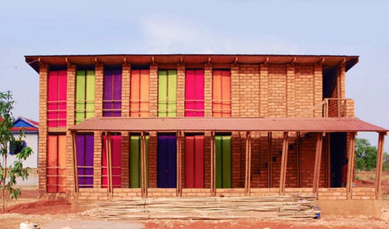 这是一所职业培训中心兼社区大楼,它位于柬埔寨的一个名为Sra Pou村镇内,这所学校是由芬兰Rudanko+Kankkunen事务所在2011年春建造的。他们既是建筑的设计者也是建造者。