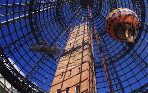欧伯豪森城自有妙招,他们将瓦斯罐改造成一个全欧洲最大、也最另类的展览馆。透过采光天窗,整个展馆营造出一个巨大的全封闭式空间。这种戏剧性的展览空间 体验,有如科幻电影中的外层空间世界,每每让参访者惊艳不已。罐内设有一个直通罐顶的电梯,可以俯视罐内全景,这是一种人间少有的空间体验。