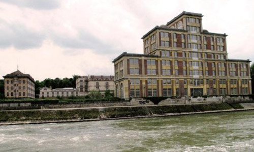 离开巴黎市中心向东,可以看到河边一大片绿色的草地,一座拥有美丽陶器花砖的建筑在水边横卧着,以肤色为基调的暖色系外墙倒映在水面,异常迷人,几乎让人错以为这里是威尼斯城的某一个角落。这里现在是雀巢公司的法国总部所在地,而在过去,它叫梅尼埃尔工厂,而这座建筑,是其中的一座厂房,一座磨粉厂。磨粉厂?没错。因为这里制造的是巧克力。
