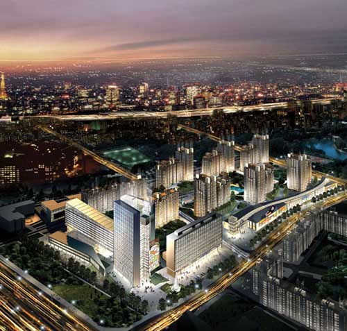 第七街区位于北京西四环中路,距西长安街2300米。总规模达80万平方米,是一个高档综合性建筑群??⑸淌潜本┚┐罄ヂ胤康夭⒂邢薰?,建筑设计为知名的加拿大蔡德勒建筑设计公司,园林景观设计是著名的美国EDSA。