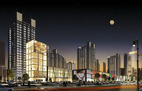 社区从西向东,紧邻西四环的是双柱形底层相连的写字楼公寓,它的造型极为独特,是西四环绝对地标性建筑物。其东侧是一座全精装高档商用公寓。再往东是一英里长的步行商业街,汇集时尚名店、知名餐饮、酒吧、咖啡屋等。商业街按国际最前卫的设计风格,采用外廊店面和挑高内廊的设计,使整个建筑物富于节奏和韵律,充分舒展可逛街面和可流连风景,绝对巴黎伦敦名店街道的缩影,是北京绝无仅有的。