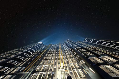 内部围合的是8栋高级住宅,住宅从西向东并排排列。国际著名设计大师构图下的建筑外立面新颖别致,大量运用简约竖线条,配合每户浅绿色落地玻璃窗,整齐而富有层次;采用高档灰色面砖和复合材料,这种欧洲目前比较流行的新哥特风格给人以庄重典雅而有教养的感受。在适当的地方更有从底到天的光柱、光线条和发光点,配合特意安排的凹凸平面,庄重之外不失现代的活泼。