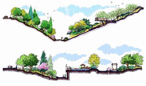 城市化的进程使绿地逐渐地被侵蚀,居住的密度加大,人被迫的暴露在众目睽睽之下:冰冷的铺装路面,冷漠的现代建筑。城市的建设使人们越来越远离理想的栖居,远离蓝天下青草绿树、鸟语花香、自然自在的生活。香逸半山的景观设计体现在有限得空间中为人们提供生态、自然的生活场景,使得人们在自家阳台和庭院空间中,闻到花清香、草新味,体现一种心灵与身体的自然回归。通过绿地、生态硬地、灌木与树、少量的构筑等多层次的组合,使人们置身于大自然的怀抱,最大限度满足人们回归自然的心灵追求。