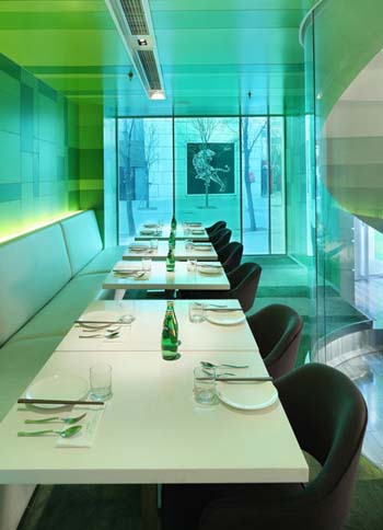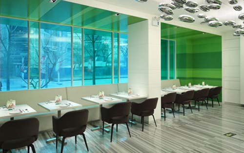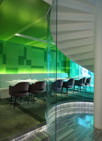 除厨房,吧台等基本后场之外,所有的外场用餐区域以环境心理学的模式呈现,每个面向喧嚣都会为主的景观用餐区都被赋予独特的调色盘与窗口来帮助人们审读自我, 同时透过窗口静观这纷扰的城市,为不同的人们创造一个属于他们自己的心灵加油站。设计师利旭恒认为, 对于现代时尚餐饮空间的设计,食客心理因素要优先于生理因素来考虑, 特别是在繁华的都会中心, 用餐当然绝对不只是纯粹的生理行为, 更多的是心理学的反射, 每当用餐时刻, 人们思考的除了美食之外,同时也再选择一个能让身心完全放松的空间,在饱餐一顿的时候也能恢复良好的精神状态。