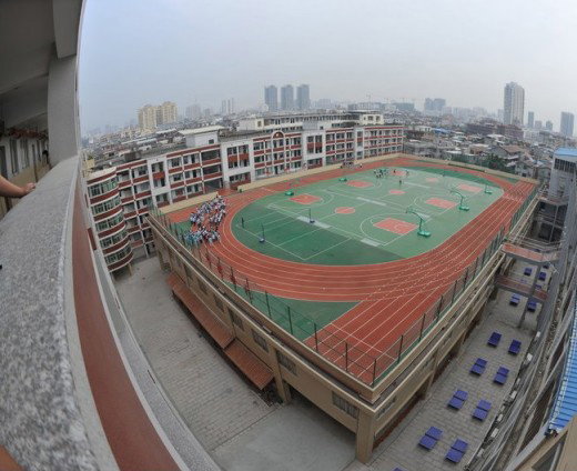 “主要就是因为学校现有的场地,不能建起一座标准的体育场,才建的这座空中体育场。”市八中负责工程建设的副校长李剑波说出了其中的原因。