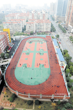 2006年就已经建成的长沙市第二十六中的“空中操场”,同样“功能齐全”,楼上的操场,楼下的乒乓球室、体操室等,将有限的用地最大限度地合理利用。
