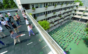 操场太小,南京鼓楼区一小学部分学生只能在楼顶做操