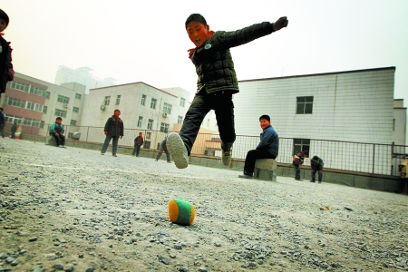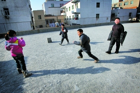 昨天中午,记者再次来到这个凹凸不平、石子遍布的“空中操场”时,迎接记者的是孩子们的笑脸。掷沙包,踢毽子,孩子们在操场上互相嬉戏,腾起的是灰尘和笑声。