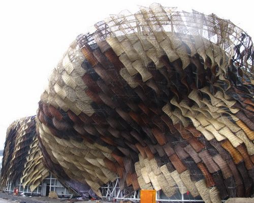此外,从内部看来,西班牙馆也是一座地道的绿色建筑。在总面积达8000平方米的大厅内,考虑到节能,展馆内部主要使用了竹子和半透明纸作为材料,顶部则使用太阳能板。设计方案也考虑到了上海台风、梅雨和高温等气候因素,“建筑非常牢固,而且场馆设计也考虑到了如何调节室内温度”。