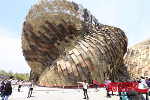 世博会之美,美在展馆??缛朐扒?,巧夺天工、美轮美奂的各国场馆场面让人眼前一亮,如荷兰馆像荷花、俄罗斯馆像生命树、罗马尼亚馆像青苹果、沙特馆像月亮船、新加坡馆像音乐盒、以色列馆像贝壳、西班牙馆像藤编的鸟巢、英国馆像绽放的蒲公英……对于建筑设计者们独特的设计理念,我们大家发出了不同的感叹,纷纷表示又学到一招。印象最深的是俄罗斯馆,展馆由12个塔楼和“悬浮于空中”的立方体组成,象征着生命之花、太阳以及世界之根。展馆建筑既似花朵,又似“生命树”,12个“花瓣”形成塔楼,顶部的镂空图案则表现了俄罗斯各民族的装饰特色。夜晚,塔楼的白金颜色会变成黑、红、金色,三种颜色交相辉映象征着俄罗斯传统文化。塔楼的“根部”蜿蜒至中央广场的“文明立方”,形成“人”形标识。其外部装饰组件可以自由排列,形成巨幅“活动画面”墙,特别俄罗斯展馆精致漂亮的外观让我有相见恨晚的感觉。