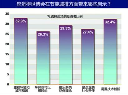 世博会崇尚的低碳环保的理念已经在上海生根发芽,融入上海城市的方方面面。上海世博会大力倡导的低碳城市发展,除了说明世界人口激增与环境资源过度消耗之间的矛盾日益突出以外,还反映了一个当今世界绿色低碳的发展趋势。越来越多的上海人也逐渐意识到绿色低碳对城市发展的重要性。以交通方面来说,世博会期间,由于世博规划的主动限制措施,超过90%的观众选择乘轨交、公交等绿色低碳的出行方式观博。这也从一定程度上验证了绿色低碳出行在上海的可行性,也对上海推出更为便捷的绿色交通体系提出了更高的要求。