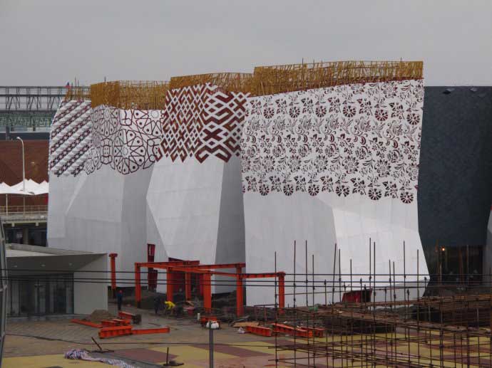 上海世博会将要取得的伟大成就毋庸质疑!但在繁华盛世的背景之下,拷问真实的内心,在建筑学的内与外,世博会建设又有着可以展开讨论的矛盾和悖论:说到中国馆当设计师介绍完场馆后,有人实在憋不住开始炮轰中国馆的设计。言语虽然犀利,但实在是道出了大多数建筑师的心声,这是我们千挑万选出来的最优方案吗?这是能代表中国文化的方案吗?从南浦大桥上看,中国馆骄傲的伫立在世博园中央,以绝对的高度、夸张的体量、夺目的色彩压倒众生,如同一个为伟大复兴歌功颂德的纪念碑。相比其他国家馆轻松、智慧、人性的设计,中国馆只是摆出了一副端着的架势。中国馆是文化和审美的倒退,它让正走向“公民建筑”的中国一夜之间回到了过去——一个充斥着权力意识和具像文化符号的建筑时代。中国馆的主设计师在介绍完设计后,用一副山水画表述了自己的心态,画中一艘竹伐正在蜿蜒的江水中顺流而下,“我们就象竹伐中撑船的人,虽然岸边的人们还在指指点点,但我们只能被江水推着前进,也就只能作到不翻船而已”,他如是说。不知这句话除了表达设计师在建筑材料控制上的无奈外,是否仍有更深的含义。中国馆的实施质量算是上乘,设计方案在这样一个独特的时代恰好点中了政治家的心脉,也满足了世博会独一无二标志性的诉求。但我希望,中国馆的设计是特殊时代的特殊建筑观的终结。