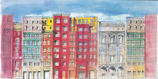 罗西将建筑与城市紧紧联系起来,提出城市是众多有意义的和被认同的事物的聚集体,它与不同时代不同地点的特定生活相关联。罗西将类型学方法用于建筑学,认为古往今来,建筑中也划分为种种具有典型性质的类型,它们各自有各自的特征。罗西还提倡相似性的原则,由此扩大到城市范围,就出现了所谓“相似性城市”的主张。罗西将城市比作一个剧场,他非常重视城市中的场所、纪念物和建筑的类型。