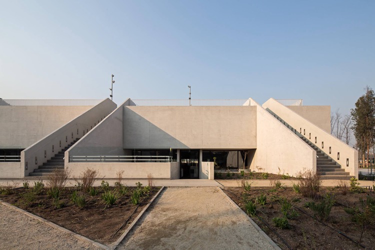 圣乔治学院(St. George College)坐落于智利圣地亚哥维塔库拉周边 Cerro Manquehue 山脚下的一片森林之中。这片森林由于山脚下的微气候得以保存。这座学校由建筑师Gustavo Munizaga于七十年代设计。它代表了一种校园类型,即将程式化的建筑分布在树林中,覆盖整个地形,并且以山势作为其依托的背景。原有设计利用了街道、走廊和广场来形成街道回路和建筑体块,进而组成了掩映于树叶之中的教室。