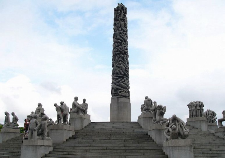 维格兰雕塑公园以人生为主题,整个公园基本上都是人体类雕塑,看似单调,却展示了生生死死的人生旅程、喜怒哀乐的人间百态,是表现一个人一生的雕塑“聚落”。其中的“生命之柱”是公园的主题所在,内容和形式都有新意,不落俗套,令人震撼。这个公园在奥斯陆具有品牌的地位,其成功之处首要的在于独特的立意。