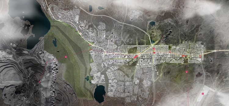 建筑师们的目标是建造一座这样的城市:广阔、开放的极地景观同人类社区亲密全面接触。城市肌理直线向东发展,同时有组织地、以分支形式向南北发展。这样的区域发展策略可以保持自然区域的完整性,同时同人类区域间接连接。