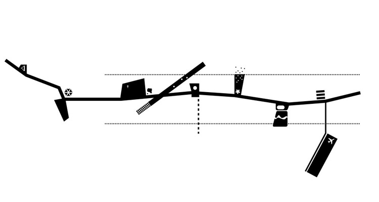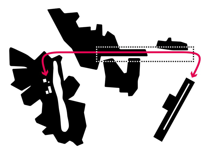 城市东移盖过基律纳既有的城市组织,使得市中心同附近的聚落Tuolluvaara、Kiirunavaara Lombolo、机场连接。方案使得城市在转变过程中保持一个连续、流畅的城市结构,运用开放的景观将新旧组织连接起来,形成统一整体。 Malmv?gen这条主街道构成城市脊梁。依托现有条件提出建设的火车站为商业和公共服务均提供发展机遇。