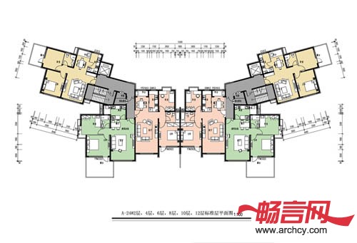 空间结构角度,本案从整体上考虑基地内部的空间肌理,首先在保留了原有的成树资源,尽最大努力不破坏原有的生态环境。进而通过多方案比较,我们确定强调横纵两个方向空间肌理的交错配置,使得原有的空间肌理得以存留,同时也弥补了原肌理的不足,最终让整个住区空间形成一个完整开放活泼的系统。此外,本案在空间设计中注重了两种空间轴线的体现,一中轴线是贯穿小区的主路网体系,便捷地连接起各个绿化景观带和南侧小区中心广??;另一种轴线由各个组团绿地依据原有保留绿化相互延伸,把小区居民向中心绿地引导。
