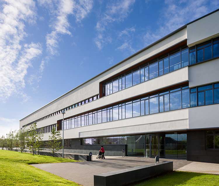 JZ: I had a unique opportunity to work at the National University of Ireland in Galway from 2006 to 2013, designing 3 different buildings, the Biosciences Research Building, the research library, the clinical translational research facility. These were all issued as one large tender package for three separate sites. These were part of a new process in Ireland called "Design-Build-Renovate". In this process, the architects start working for the university and then their contract transfers from the university to a builder to see the building through construction. This process had never been purely applied at this scale and was completely new to the team that I was working with. The Biosciences Research Building was unique in that it was taking a number of different science departments and disciplines from across the campus and bringing them together under one roof. That was one the very first truly convergent research facilities that I've been involved in designing; in a true sense of convergence beyond multi-disciplinary work. The other part of that building that was very important was trying to drive energy costs, operation cost, energy consumption, as low as possible. The strategy of providing only mechanical ventilation, only where was required for the lab components of the program, rather than the one-size-fits-all ventilation strategy for the building. This allowed us to reduce energy consumption by over 60%. All of the office spaces, conference rooms and public spaces corridors were all naturally ventilated. There was no mechanical ventilation in those parts of the building whatsoever. Only the hard science spaces, the laboratory and support areas, the core facilities are where environmental stability was critically important, that's where mechanical system is ventilated. Again, a very simple strategy, but resulted in extreme energy consumption reduction which allowed that building to win the 2016 AIA Committee on the Environment Award. A pivotal project in my career, I was very proud to be able to contribute to that.