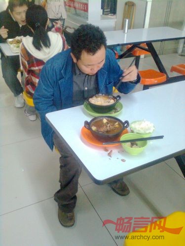 一个上午的教学之后,贺进年走进了北京服装学院学生食堂,随意点了个快餐,就埋头开始吃了起来,记者发现贺进年是用左手吃饭,好像很多设计师都是左手使用的比较多,说出这个疑惑之后,贺进年憨憨地笑着说:我们是左撇子,所以右脑比较发达,想象力丰富,所以才能创作出有设计感和艺术感的作品。这个时候的贺进年有一点点的疲惫,一个上午的忙碌仅仅依靠20分钟的吃饭时间缓解下,之后就又开车出发了。