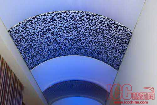 Barrisol Creadesign软膜天花产品通过植绒处理,将部分磨砂麂皮材料施加在半透明Barrisol底板上。处理结果是独一无二,加工工艺完成后,产品呈现出柔软、毛茸茸的3D效果。 产品具有新型的视觉和触摸模式,创新技术将新理念融入设计中。