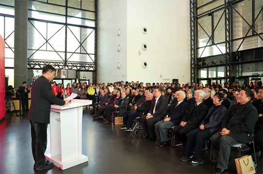 开幕式前,清华大学校长邱勇亲切慰问了关肇邺院士及受邀参加开幕式的9位院士——清华大学副校长尤政院士、杨振宁院士、吴良镛院士、马国馨院士、何镜堂院士、江亿院士、王瑞珠院士、程泰宁院士、崔愷院士,并对关肇邺院士展览的成功举办表达了祝福。邱勇校长表示,中国建筑发展迅速,对建筑设计的要求也在不断提高,清华建筑学院的学科发展需应对挑战,增强与其他院校的沟通,增强国际交流。邱勇校长还提到清华校园中由关肇邺先生团队完成的作品已有十一座,特别强调了第十二个关先生主持的同方部改造项目。该项目预计将在2021年清华110年校庆时完工。关肇邺院士对校长给予的支持和肯定表达了感谢,对受邀嘉宾的到来表示诚挚欢迎,并对同方部改造项目表达了期盼。