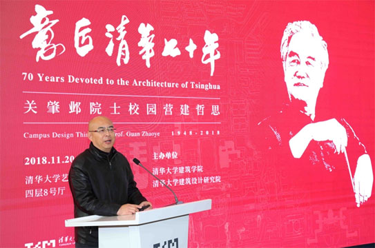2018年11月19日下午,由清华大学建筑学院、清华大学建筑设计研究院共同主办的“意匠清华七十年——关肇邺院士校园营建哲思”展览于清华大学艺术博物馆隆重开幕。此次展览萃集了关肇邺院士七十年来参与清华校园营建工作的全部成果,通过建筑模型、设计图纸、实景照片与视频的形式综合展出。此外,本次展览还包括关肇邺院士的设计手稿和访谈视频等珍贵内容。