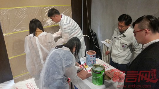 活动中,主办方立邦工程特别策划了外墙感官、创意涂刷体验环节。到场来宾争相动手尝试,感受外墙涂刷体验和施工工艺,完成属于自己的创意涂刷,并对各种建筑材料的特质有了直观的感受。
