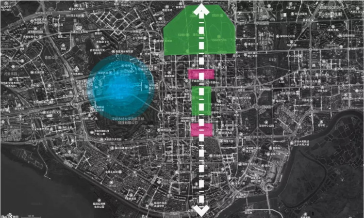 比如深圳为例,深圳城市形态并不方正,但是中轴线仍然延续中国传统城市空间布局的理念,从北往南串联起山、河、城、海、口岸等重要城市空间资源。同样中轴两侧地块价值远高于其他地块价值。而和“靖安司”区位相近的便是香蜜湖片区,类似的低调奢华有内涵。